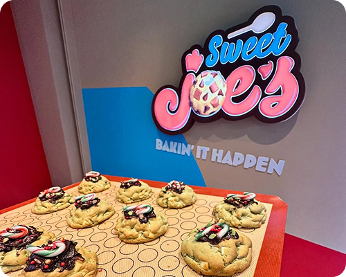 In November of 2024, we opened our first store in Grand Central shopping centre Birmingham. With a delicious menu of 8 cookies and a rotating menu every two weeks, the store has been a massive success with locals and has become the new influencer spot to check in to when visiting Birmingham. We launch 4 new flavours every two weeks, and this has seen customers visiting again and again to try out the latest cookie drop.